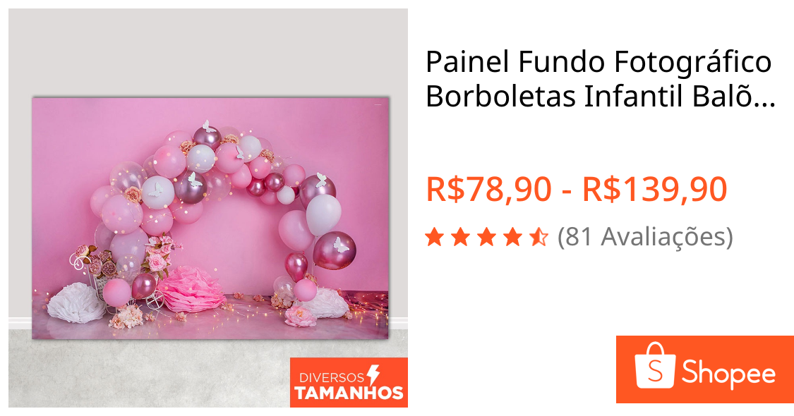 Painel Fundo Fotográfico Borboletas Infantil Balões Cenário Smash Em Tecido Sublimado para Foto